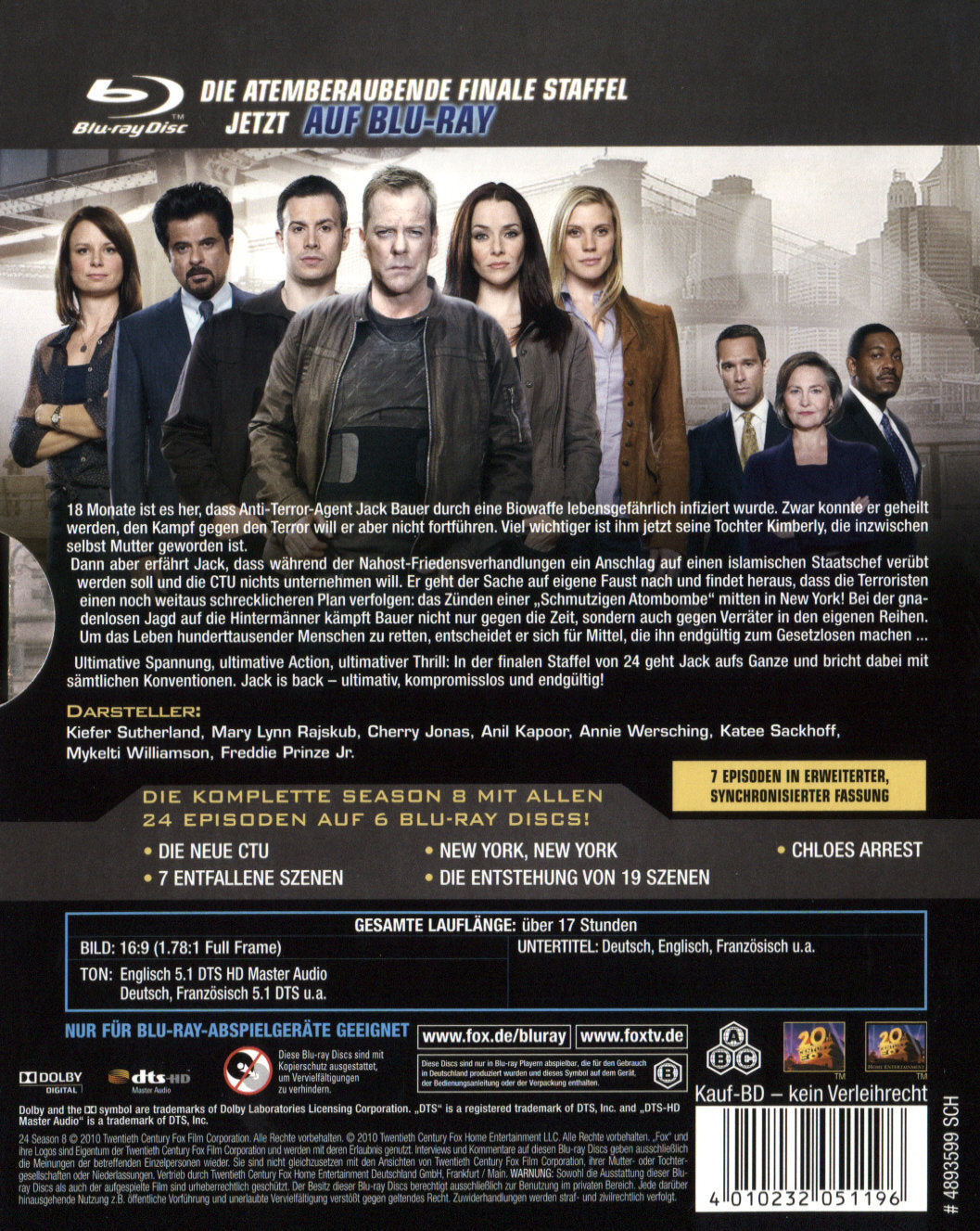 Enthält: Laufzeit Bonusmaterial ca. 114 Min.; Der neue CTU; 7 entfallene Szenen; New York, New York; Die Entstehung von 19 Szenen; Chloes Arrest; Booklet;