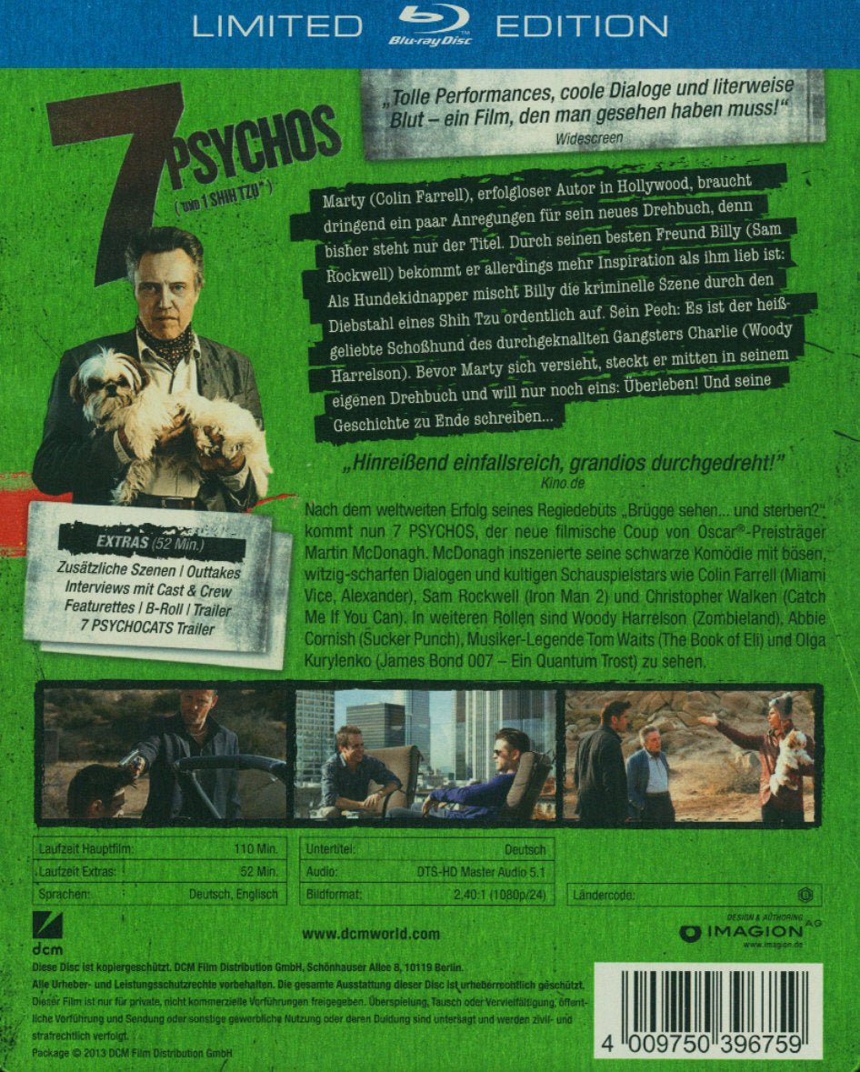 Enthält: Zusätzliche Szenen; Outtakes; Interviews mit Cast & Crew; Featurettes; B-Roll; Kinotrailer; "7 Psychocats" Trailer;