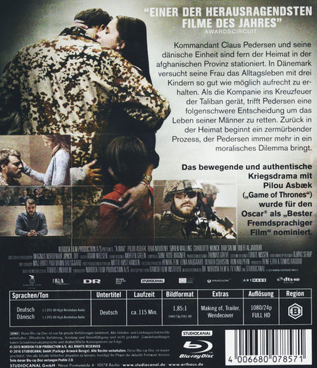 Kommandant Claus Pedersen (Pilou Asbæk) und seine dänische Einheit sind fern der Heimat in der afghanischen Provinz stationiert. Als die Kompanie ins Kreuzfeuer der Taliban gerät, fordert Pedersen Luftverstärkung an, um das Leben seiner Männer zu retten. Doch zurück in der Heimat muss sich der dreifache Familienvater vor Gericht verantworten, weil bei dem Einsatz unschuldige Zivilisten getötet wurden. Ein zermürbender Prozess beginnt, der ihn auch immer mehr in ein moralisches Dilemma bringt.