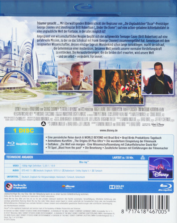 Träumer gesucht … Angespornt von wissenschaftlicher Neugier begibt sich der aufgeweckte Teenager Casey auf eine gefahrvolle Mission, zu der sie das Schicksal mit Frank zusammengeführt hat. Gemeinsam mit dem resignierten Wissenschaftler, dessen einstige Tage als Wunderkind schon lange zurückliegen, macht sie sich auf, die Geheimnisse einer mysteriösen, besseren Welt jenseits unserer normalen Vorstellungskraft zu entdecken. Die Herausforderungen, die die beiden dort erwarten, wird unsere Welt – und sie selbst – verändern. Für immer.
