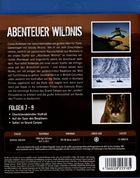 Casey Anderson hat bekanntermaßen ein großes Herz für Tiere. Gemeinsam mit Grizzly Brutus, den er vor dem Einschläfern rettete, bestritt der passionierte Naturschützer aus Montana in der ersten Staffel von „Abenteuer Wildnis“ so manches verrückte Abenteuer und begeisterte damit die Zuschauer weltweit. Nun kehrt Casey mit einer neuen Staffel der Erfolgsserie auf den Bildschirm zurück – und scheut erneut kein Risiko, um mit einigen der gefährlichsten Raubtieren der Welt auf Tuchfühlung zu gehen: In British Columbia fährt er diesmal unter anderem mit Vielfraßen um die Wette Ski, in Montana rückt er Pumas regelrecht auf die Pelle und begibt sich dann auch noch per Kajak in die reißenden Fluten des Colorado River, um die einmalige Kulisse des Grand Canyon aus der „wilden“ Perspektive zu erleben und die große Artenvielfalt am Rande des Flusses zu bestaunen.