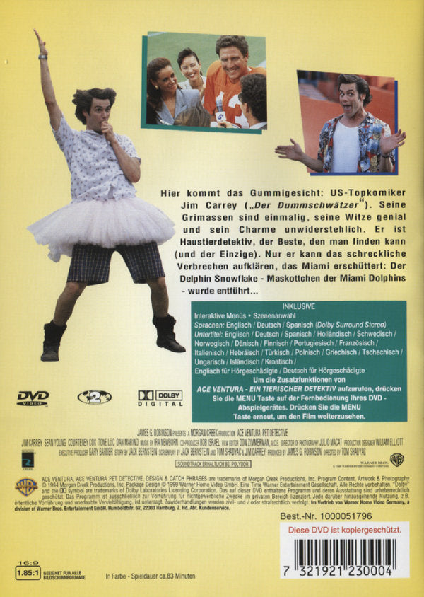 Achtung, hier kommt ein neuer Supertyp: US-Topkomiker Jim Carrey. Seine Grimassen sind einmalig, seine Witze genial und sein Charme unwiderstehlich. Er ist Hausdetektiv, der Beste, den man finden kann (und der Einzige). Nur er kann das schreckliche Verbrechen aufklären, das Miami erschüttert: Der Delphin Snowflake - Maskottchen der Miami Delphins - wurde entführt...