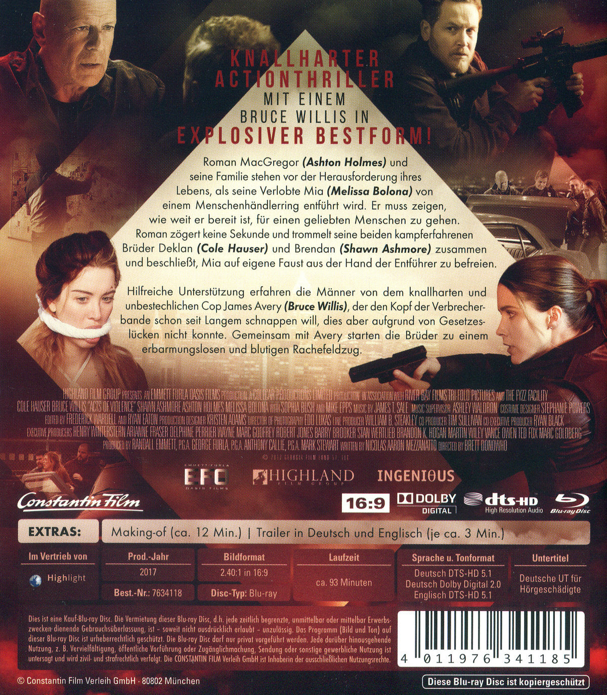 In ACTS OF VIOLENCE ist Actionstar Bruce Willis auf der Suche nach einer jungen Frau, die von Menschenhändlern verschleppt wurde. Keine Frage, dass der Hollywoodstar hier wieder für brachiale Action sorgt.
