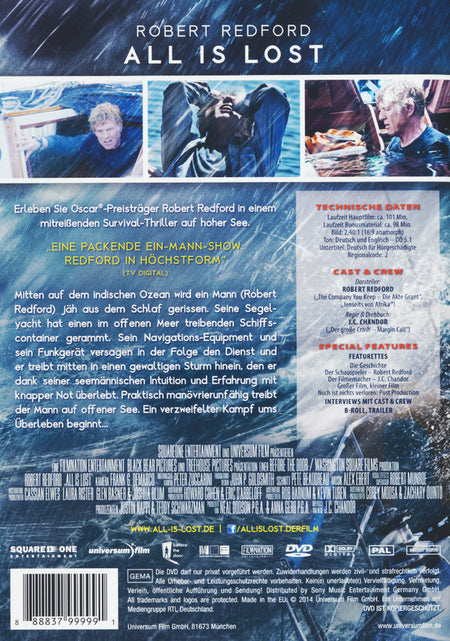 Mitten auf dem indischen Ozean wird ein Mann jäh aus dem Schlaf gerissen. Seine zwölf Meter lange Segelyacht hat einen im offenen Meer treibenden Schiffscontainer gerammt. Sein Navigations-Equipment und sein Funkgerät versagen in der Folge den Dienst und er treibt mitten in einen gewaltigen Sturm hinein. In letzter Minute gelingt es dem Mann, das Leck in seinem Boot notdürftig zu flicken. Er überlebt den Sturm dank seiner seemännischen Intuition und Erfahrung mit knapper Not. Praktisch manövrierunfähig treibt der Mann auf offener See. Seine letzte Hoffnung ist es, von der Strömung in eine der großen Schiffahrtsstrecken getrieben zu werden. Unter der unerbittlich sengenden Sonne, sieht sich der sonst so selbstbewusste und erfahrene Segler mit seiner eigenen Sterblichkeit konfrontiert und kämpft einen verzweifelten Kampf ums Überleben.