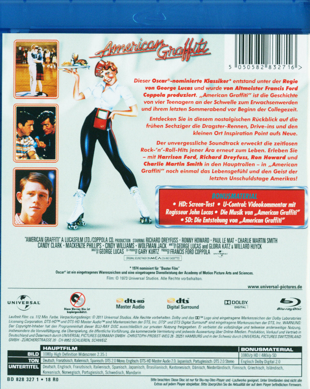 Schauspieler: Bo Hopkins, Candy Clark, Charles Martin Smith, Cindy Williams, Harrison Ford, Mackenzie Philips, Paul Le Mat, Richard Dreyfuss, Ron Howard, Ronny Howard, Wolfman Jack und Yann Onko