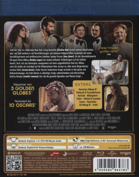 "Hochklassige Schauspieler, messerscharfe Dialoge, grandiose Frisur- und Fashionexzesse, David O. Russells Krimisatire ist wahrhaftig eine b�se, elegante Gaunerei von Film." (Freundin)