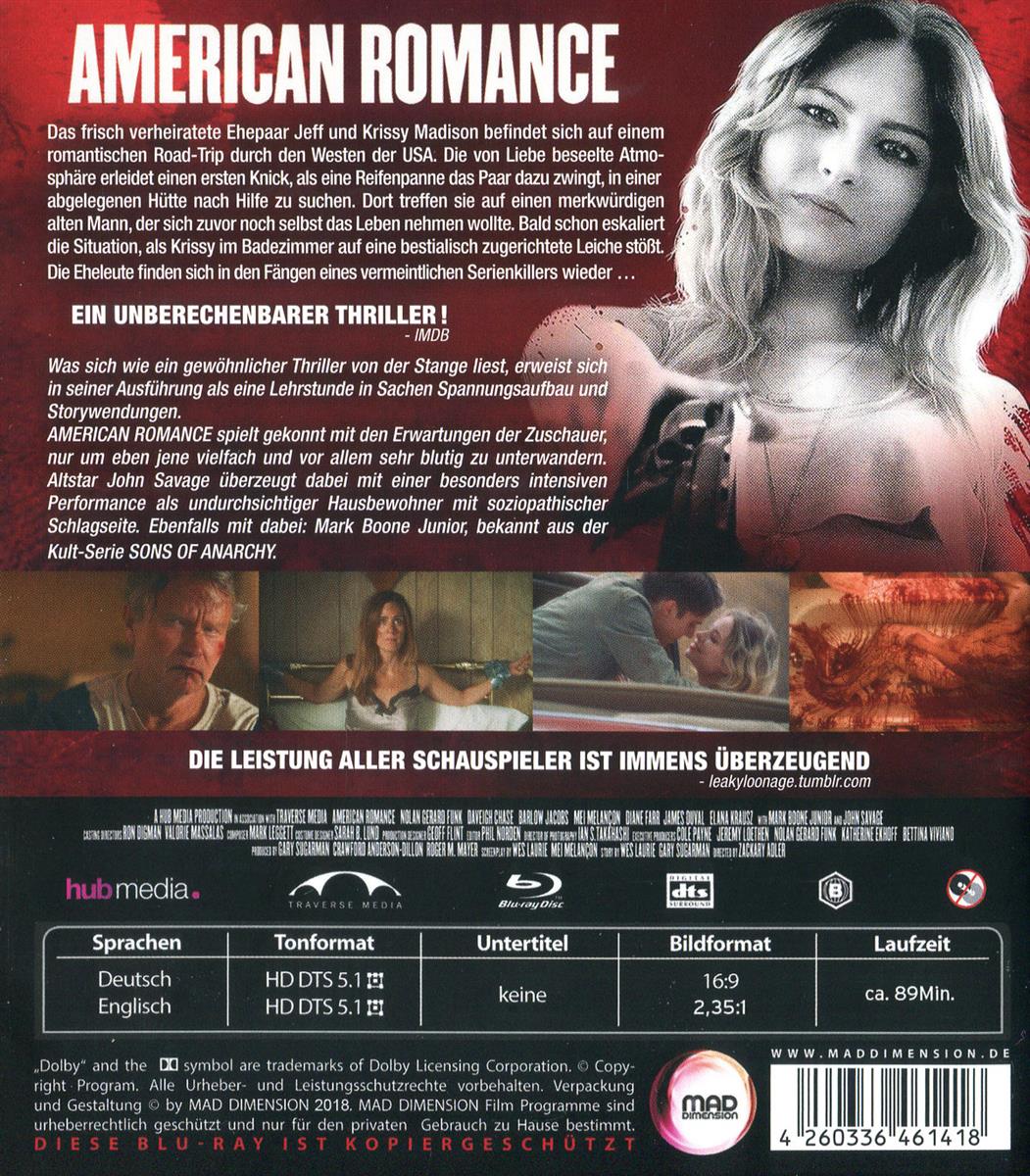 Was sich wie ein gew�hnlicher Thriller von der Stange liest, erweist sich in seiner Ausf�hrung als eine Lehrstunde in Sachen Spannungsaufbau und Storywendungen. American Romance spielt gekonnt mit den Erwartungen der Zuschauer, nur um eben jene vielfach und vor allem sehr blutig zu unterwandern. Altstar John Savage �berzeugt dabei mit einer besonders intensiven Performance als undurchsichtiger Hausbewohner mit soziopathischer Schlagseite. Ebenfalls mit dabei: Mark Boone Junior, bekannt aus der Kult-Serie SONS OF ANARCHY.