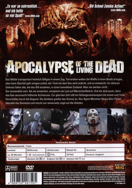 Das Milit�r transportiert heimlich Giftgas in einem Zug. Terroristen wollen die Waffe in ihren Besitz bringen, aber beim �berfall geht einiges schief, der Tank mit dem Gas wird undicht, und es entweicht. Im n�heren Umkreis fallen alle, die das Gift einatmen in einen komat�sen Zustand. Aber sie sterben nicht. Sie verwandeln sich. Als sie erwachen, versp�ren sie Lust auf Menschenfleisch. Und sie sind sauer, denn das Gas verursacht h�llische Schmerzen. Zur gleichen Zeit rollt ein Gefangenentransport mit einem zum Tode Verurteilten durch die Gegend. Die Zombies greifen den Konvoi an. Nur Agent Mortimer Reyes �berlebt das Gemetzel und macht nun seinerseits Jagd auf die Untoten.