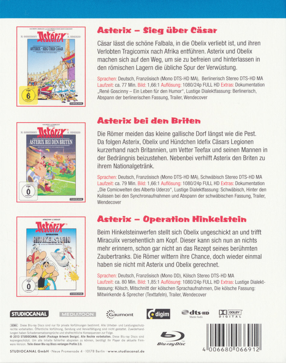 Der gro�e C�sar zittert, das r�mische Imperium wackelt und das Kolosseum f�llt einfach um. Asterix und Obelix, die unbesiegten gallischen Pr�gelknaben machen aus Rom eine Achterbahn. Der starke Dicke und der schlaue Kleine versetzen die r�mischen Legionen in Dauerstre� und degradieren selbst den h�rtesten Centurio zur Schnecke. Von den gef�rchteten Gladiatoren bleibt ein H�ufchen Elend, und selbst die hungrigsten L�wen haben keinen Bi� mehr. Beim Wagenrennen a la Ben Hur bleibt keine Auge trocken, denn die R�mer haben alle ein Rad ab und die restlichen Konkurrenten wirft Obelix einfach aus der Bahn. Und das alles nur, weil Obelix sich verliebt hat. Pech f�r die R�mer, da� sie ausgerechnet seine Angehimmelte gekidnappt haben. Als frischgebackene Legion�re verpassen Asterix und Obelix ihren neuen "Kameraden" eine Abreibung nach der anderen. Da darf der Galeerenkapit�n im gro�en Teich und der Koch in seiner eigenen Suppe baden. "Die spinnen, die R�mer" zu diesem Urteil kommt man auch im neuesten und tollsten Lachsalven-Hit mit den Helden aus Klein-Bonum. Asterix und Obelix sind das unschlagbare Gag-Gespann.