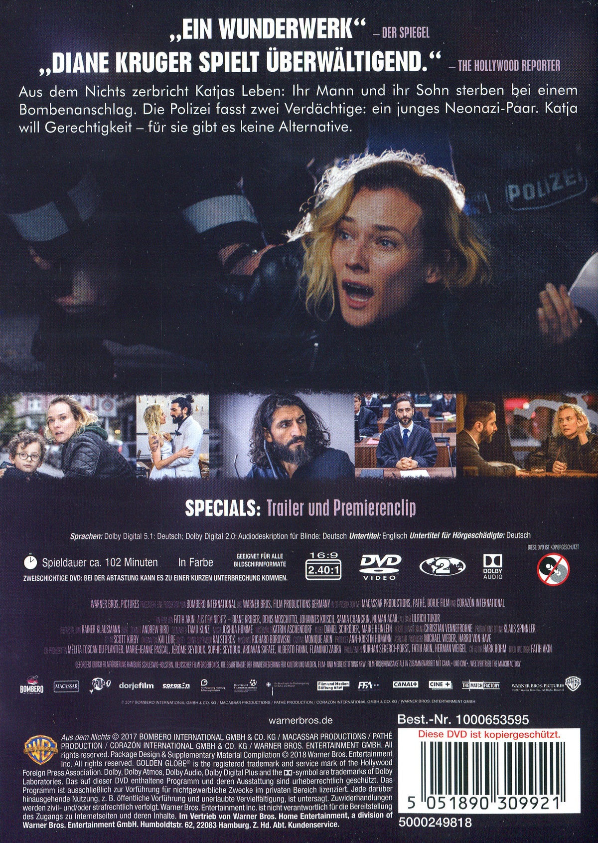 AUS DEM NICHTS ist ein Thriller über die Liebe einer Frau zu ihrer Familie über den Tod hinaus. Aus dem Nichts zerbricht Katjas Leben: Ihr Mann und ihr Sohn sterben bei einem Bombenanschlag. Die Polizei fasst zwei Verdächtige: Ein junges Neo-Nazi-Paar. Katja will Gerechtigkeit - für sie gibt es keine Alternative.