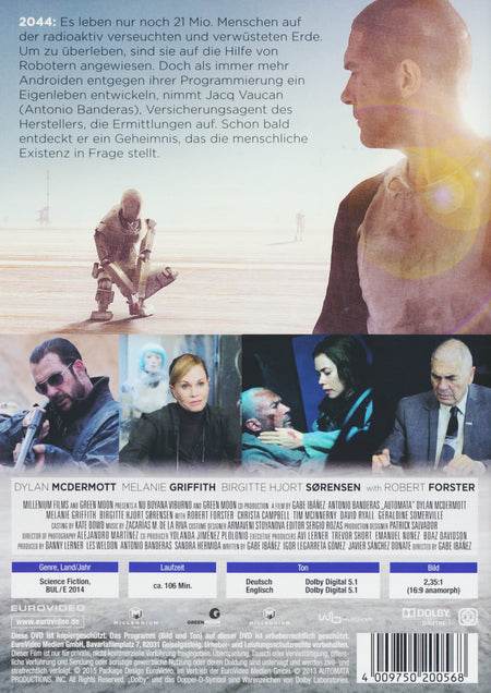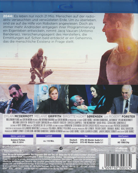 2044: Es leben nur noch 21 Mio. Menschen auf der radioaktiv verseuchten und verwüsteten Erde. Um zu überleben, sind sie auf die Hilfe von Robotern angewiesen. Doch als immer mehr Androiden entgegen ihrer Programmierung ein Eigenleben entwickeln, nimmt Jacq Vaucan, Versicherungsagent des Herstellers, die Ermittlungen auf. Schon bald entdeckt er ein Geheimnis, das die menschliche Existenz in Frage stellt.
