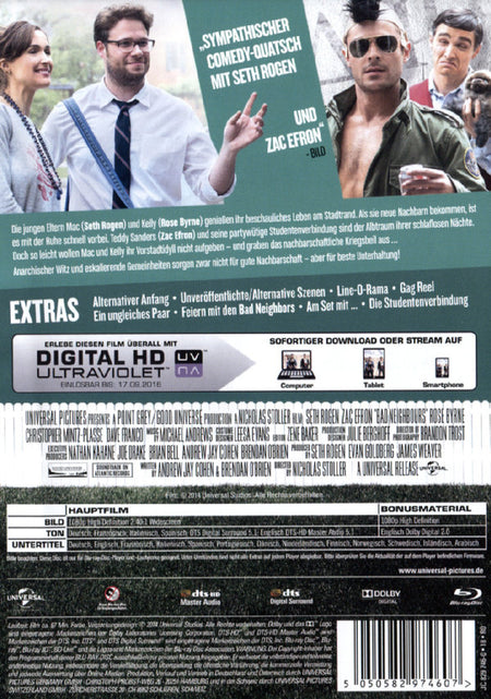 Enthält: Alternativer Anfang; Unveröffentlichte/Alternative Szenen; Line-O-Rama; Gag Reel; Ein ungleiches Paar; Feiern mit den Bad Neighbors; Am Set mit ...; Die Studentenverbindung;