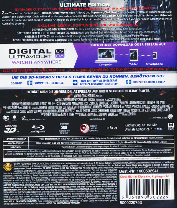 Batman v Superman: Dawn of Justice (+ Blu-ray 2D Kinofassung) (+ Blu-ray 2D Ultimate Edition)