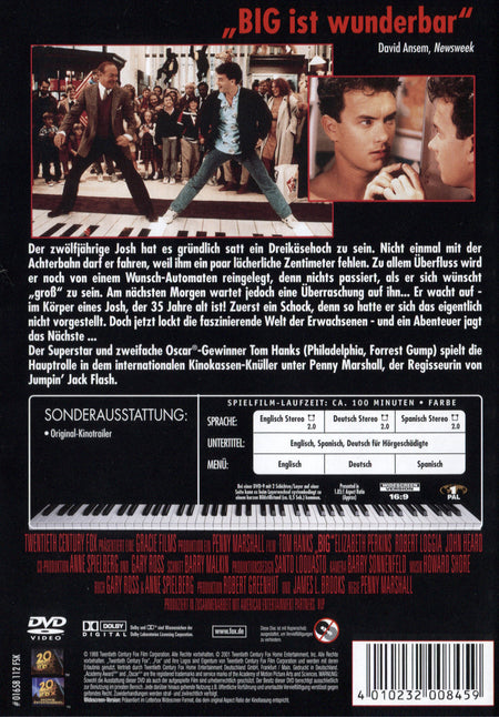 Der zwölfjährige Josh hat es satt, ein Dreikäsehoch zu sein. Nicht einmal Achterbahn darf er fahren, weil ihm ein paar lächerliche Zentimeter fehlen. Auf einem Jahrmarkt wünscht er sich von einem Wunschautomaten "groß" zu sein, doch die Maschine scheint ihn reingelegt zu haben. Am nächsten Morgen jedoch wartet eine Überraschung auf ihn: Er wacht auf - im Körper eines 35-jährigen Josh. Nachdem er den Schock überwunden hat, stürzt er sich Hals über Kopf ins Erwachsenenleben - ein Abenteuer jagt das nächste...D