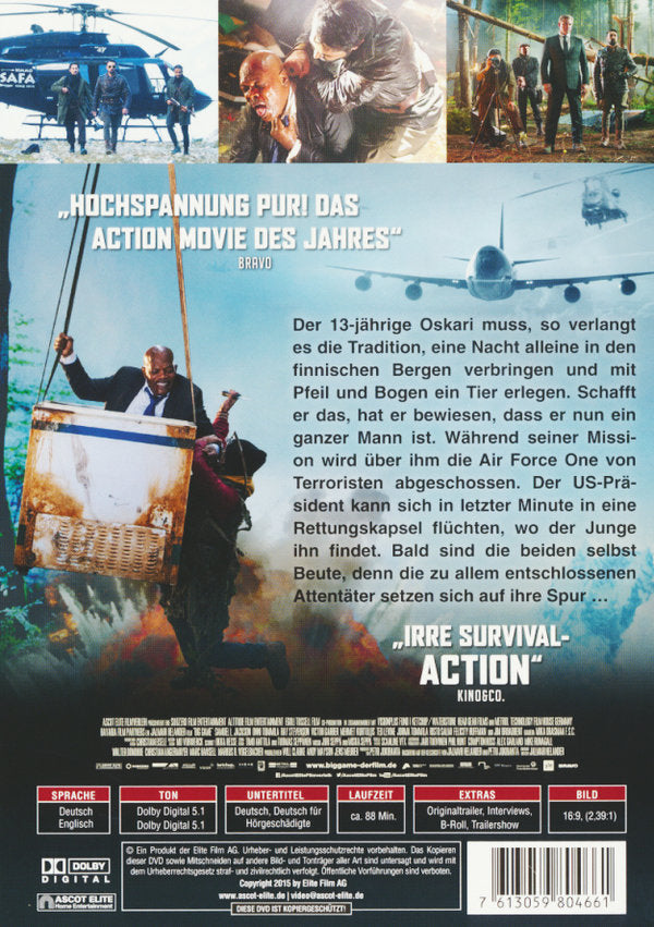 Der schüchterne 13-jährige Oskari steht vor einer großen Aufgabe: Er muss, wie es die Tradition verlangt, eine Nacht alleine und nur mit Pfeil und Bogen bewaffnet in den finnischen Bergen verbringen. Dort ist es seine Aufgabe, ein Tier zu erlegen. Kehrt er am nächsten Tag mit seiner Beute zurück, hat er bewiesen, dass er nun ein ganzer Mann ist. Keine leichte Aufgabe für den ängstlichen Oskari, denn die Familienehre steht auf dem Spiel und nicht einmal sein eigener Vater glaubt, dass er es schaffen kann. Während sich der Junge also mit großen Versagensängsten auf den Weg macht, wird direkt über ihm die Air Force One Ziel eines Terroranschlags. Mit an Bord: der Präsident der Vereinigten Staaten. In letzter Minute gelingt es einem der Leibwächter, diesen in eine Rettungskapsel zu verfrachten, die aus dem Flugzeug geschossen wird. Oskari findet den angeschlagenen Präsidenten, zeigt sich aber wenig beeindruckt. Schließlich ist er entschlossen, seine Mission zu erfüllen. Dem mächtigsten Mann der Welt bleibt also keine Wahl, er muss den Jungen auf seiner Jagd begleiten. Noch ahnen die beiden nicht, dass sie selbst die Beute sind. Denn die Attentäter sind ihnen auf den Fersen und zu allem bereit. Die Jagd ist eröffnet ...
