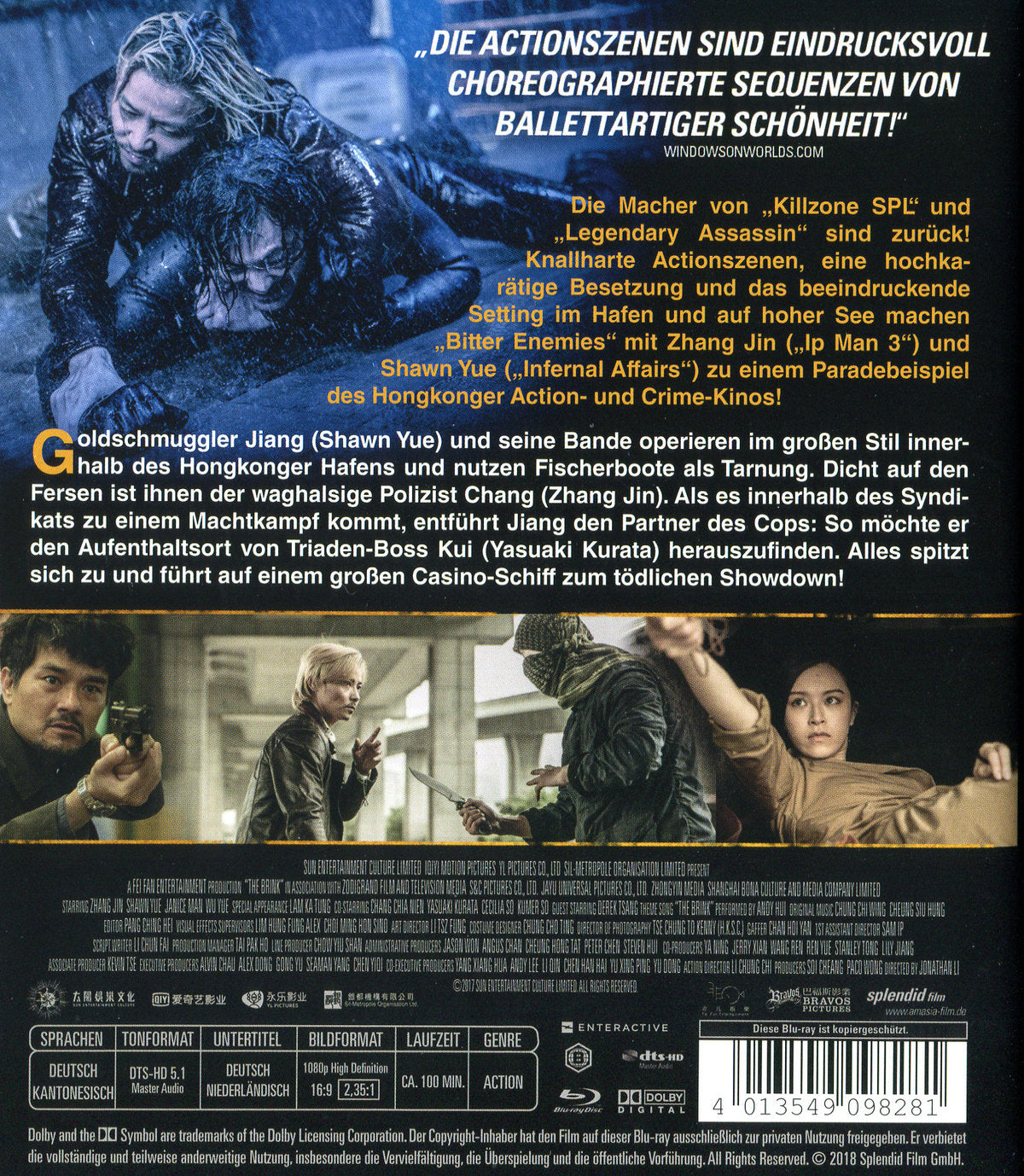 Die Macher von „Killzone SPL“ und „Dog Bite Dog“ sind zurück! Knallharte Actionszenen, eine hochkarätige Besetzung und das beeindruckende Setting im Hafen und auf hoher See machen „Bitter Enemies“ mit Zhang Jin („Ip Man 3“) und Shawn Yue („Infernal Affairs“) zu einem Paradebeispiel des Hongkonger Action- und Crime-Kinos!