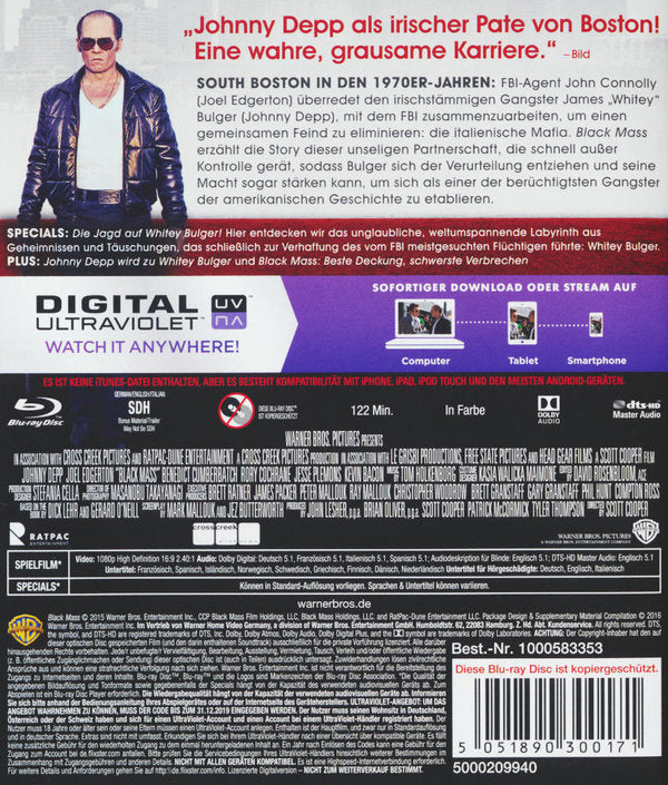 South Boston in den 1970er-Jahren: FBI Agent John Connolly (Edgerton) überredet den irischstämmigen Gangster James „Whitey“ Bulger (Depp), mit dem FBI zusammenzuarbeiten und einen gemeinsamen Feind zu eliminieren: die italienische Mafia. Diese unselige Partnerschaft gerät schnell außer Kontrolle, sodass Whitey sich der Verurteilung entziehen und seine Macht sogar stärken kann, um sich als einer der skrupellosesten und einflussreichsten Gangster in der Geschichte von Boston zu behaupten.