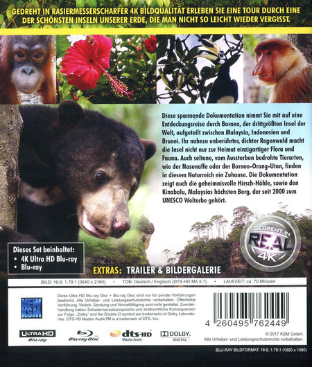 Faszination Asien! Gedreht in rasiermesserscharfer 4K Bildqualität erleben Sie eine Tour durch eine der schönsten Inseln unserer Erde, die man nicht so leicht wieder vergisst. Denn diese spannende Dokumentation nimmt Sie mit auf eine Entdeckungsreise durch Borneo, der nach Grönland und Neuguinea mit 751.936 qkm drittgrößten Insel der Welt, aufgeteilt zwischen Malaysia, Indonesien und Brunei.