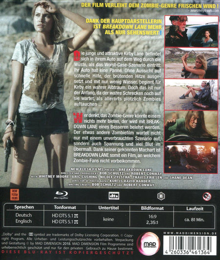 Wer denkt, das Zombie-Genre k�nnte einem nichts mehr bieten, der wird mit BREAKDOWN LANE eines Besseren belehrt werden. Der etwas andere Zombiefilm wartet nicht nur mit einem unverbrauchten Szenario auf, sondern auch Spannung und viel Blut im �berma�.