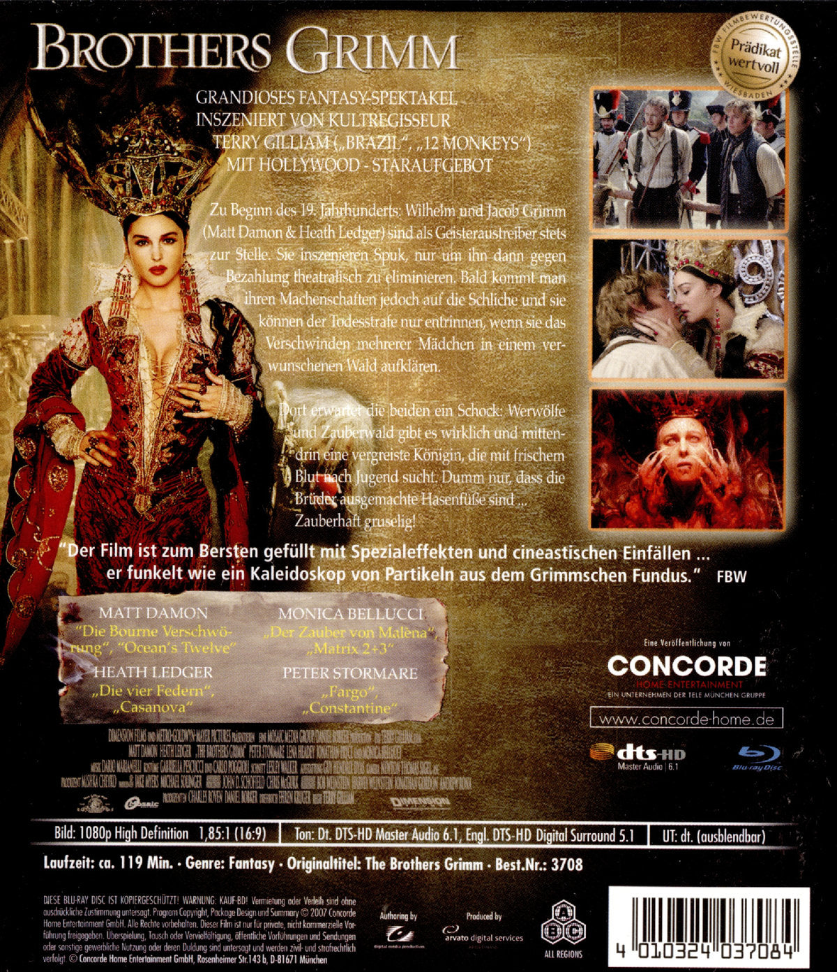 Wilhelm "Will" und Jakob "Jake" Grimm ziehen durch das durch die französische Besatzung leidende Deutschland des frühen 19. Jahrhunderts. Als vermeintliche Geistesaustreiber reisen sie durch die Lande und lassen sich ihren Exorzismus von den ahnungslosen Dorfbewohnern teuer bezahlen - die nicht wissen, dass diese Geistererscheinungen von den Brüdern selbst vorgetäuscht werden. Das geht gut, bis die Gauner von den französischen Besatzern gefangen genommen werden. Man verurteilt sie dazu, ihre Fähigkeiten als Hexenbeschwörer zu beweisen - gegen eine Hexe, die ihre unsterbliche Schönheit durch das Blut unschuldiger Kinder gewinnt...