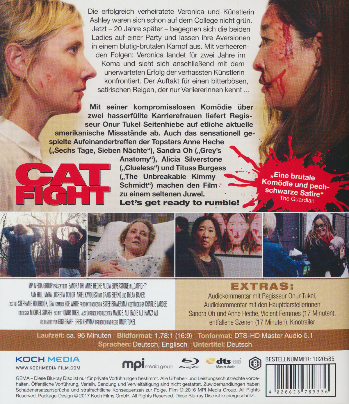 Mit seiner kompromisslosen Satire über zwei hasserfüllte Karrierefrauen liefert Regisseur Onur Tukel einen filmischen Kommentar auf das Amerika der heutigen Zeit ab. Dabei ist "Catfight" nicht nur dank seiner bis aufs Blut ausgefochtenen Seitenhiebe auf etliche amerikanische Missstände sehenswert, sondern auch als sensationell gespieltes Aufeinandertreffen der Topstars Anne Heche ("Sechs Tage, Sieben Nächte") und Sandra Oh ("Grey’s Anatomy"). An ihrer Seite u. a. in Nebenrollen zu bewundern: Alicia Silverstone, Dylan Baker und Shooting Star Titus Burgess ("The Unbreakable Kimmy Schmidt"). Let’s get ready to rumble...
