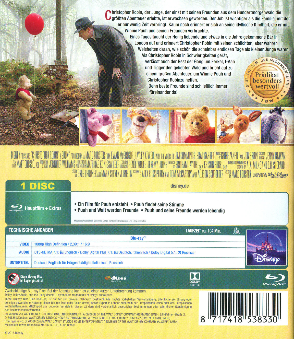 Enthält: Extras: Ein Film für Puuh entsteht; Puuh findet seine Stimme; Puuh und Walt werden Freunde; Puuh und seine Freunde werden lebendig;