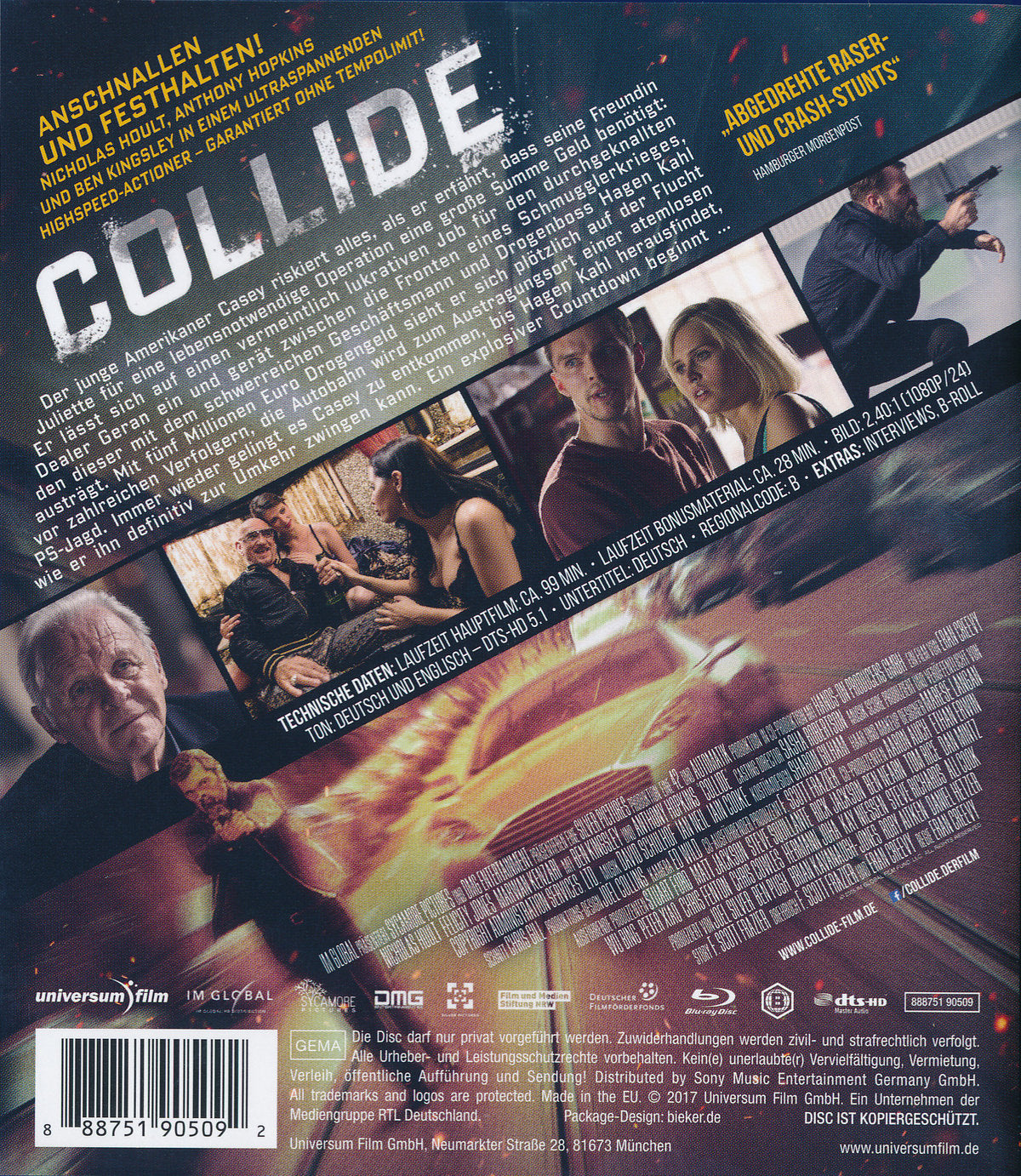 Wie weit würdest Du für die Liebe gehen? Der junge Amerikaner Casey (Nicholas Hoult) riskiert alles, als er erfährt, dass seine Freundin Juliette (Felicity Jones) für eine lebensnotwendige Operation eine große Summe Geld benötigt: Er lässt sich auf einen vermeintlich lukrativen Job für den durchgeknallten Dealer Geran (Ben Kingsley) ein und gerät zwischen die Fronten eines Schmugglerkrieges, den dieser mit dem schwerreichen Geschäftsmann und Drogenboss Hagen Kahl (Anthony Hopkins) austrägt. Mit fünf Millionen Euro Drogengeld sieht er sich plötzlich auf der Flucht vor zahlreichen Verfolgern, die Autobahn wird zum Austragungsort einer atemlosen PS-Jagd. Immer wieder gelingt es Casey zu entkommen, bis Hagen Kahl herausfindet, wie er ihn definitiv zur Umkehr zwingen kann. Ein explosiver Countdown beginnt…
