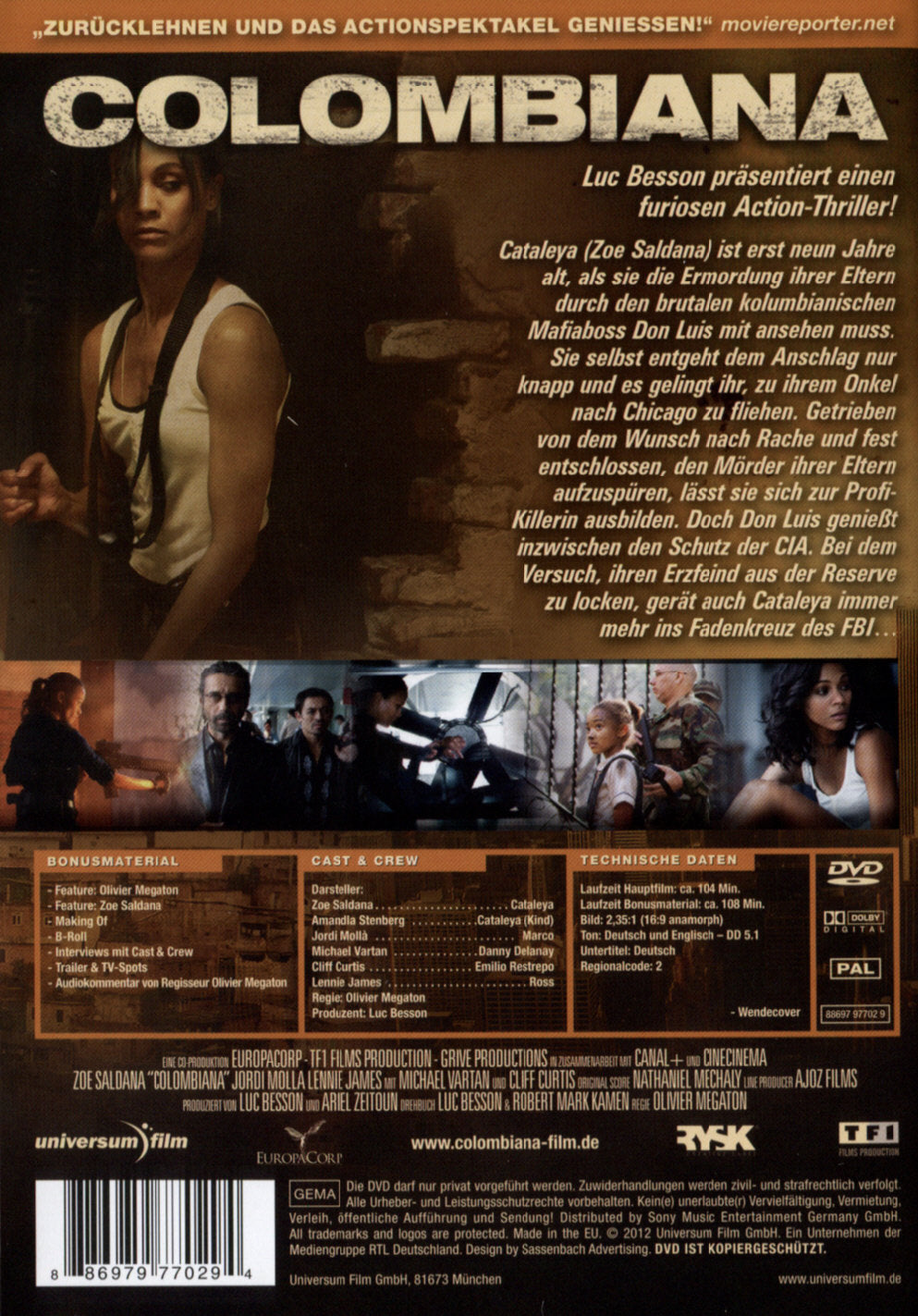 Enthält: Feature: Olivier Megaton; Feature: Zoe Saldana; Making Of; B-Roll; Interviews mit Cast & Crew; Trailer; TV-Spots; Audiokommentar des Regisseurs; Laufzeit Bonusmaterial ca. 108 Min.;