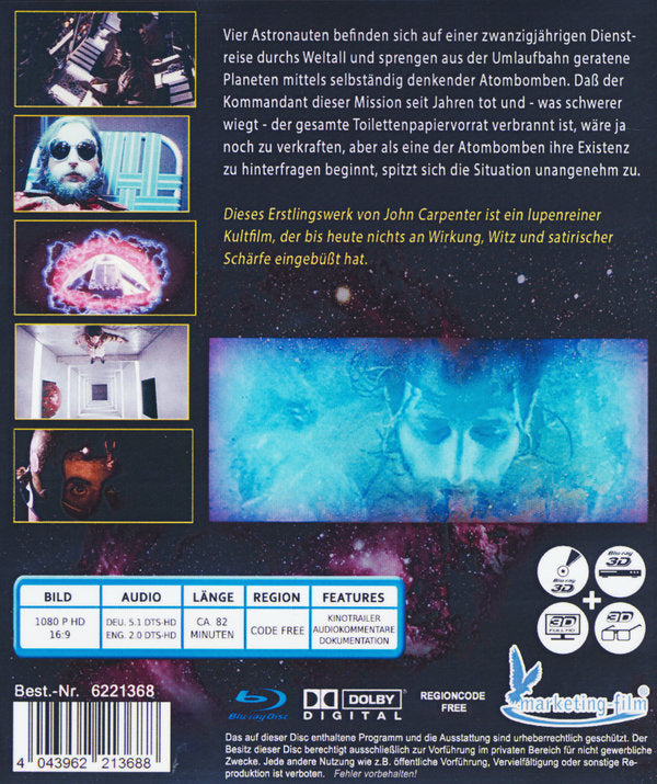 Mitte des 21. Jahrhunderts: Von Weltraumschiffen getragen, schießen die Menschen mit Überlichtgeschwindigkeit ins All hinaus, um neue Planeten zu bevölkern. 20 Jahre vorab bahnt die DARK STAR den Weg: Sie sprengt instabile Planeten, die für die Kolonisten zur Todesfalle werden könnten. Letzter Zielplanet: Die Bombe ist scharf, der Countdown beginnt. Doch ein Fehler im Airlock droht plötzlich zur Katastrophe zu werden. Kann die Crew das Superhirn überlisten, oder werden alle im interstellaren Universum untergehen?