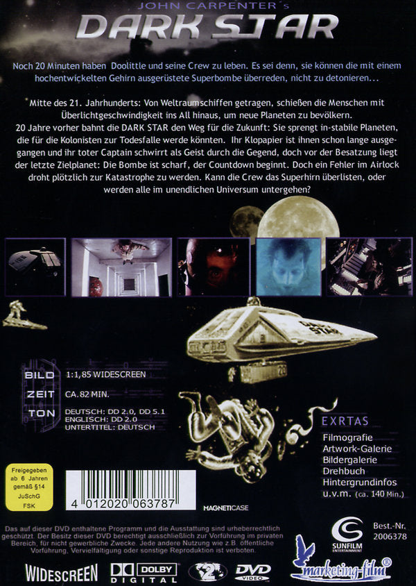 Mitte des 21. Jahrhunderts: Von Weltraumschiffen getragen, schießen die Menschen mit Überlichtgeschwindigkeit ins All hinaus, um neue Planeten zu bevölkern. 20 Jahre vorab bahnt die DARK STAR den Weg: Sie sprengt instabile Planeten, die für die Kolonisten zur Todesfalle werden könnten. Letzter Zielplanet: Die Bombe ist scharf, der Countdown beginnt. Doch ein Fehler im Airlock droht plötzlich zur Katastrophe zu werden. Kann die Crew das Superhirn überlisten, oder werden alle im interstellaren Universum untergehen?