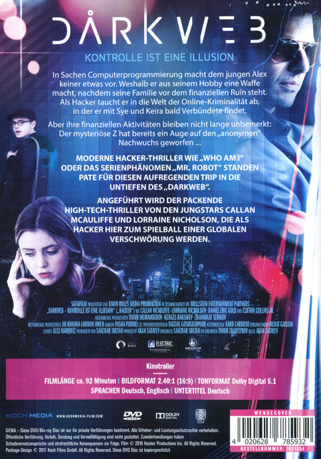 Moderne Hacker-Thriller wie "Who Am I", vor allem aber das Serienphänomen "Mr. Robot" standen Pate für diesen aufregenden Trip in die Untiefen des "Darknet", das dank Anonymous und Co. längst auch ins öffentliche Bewusstsein vorgedrungen ist. Angeführt wird der packende High-Tech-Thriller von den Jungstars Callan McAuliffe und Jack Nicholsons Tochter Lorraine, die als Hacker hier zum Spielball mächtiger Interessen werden.