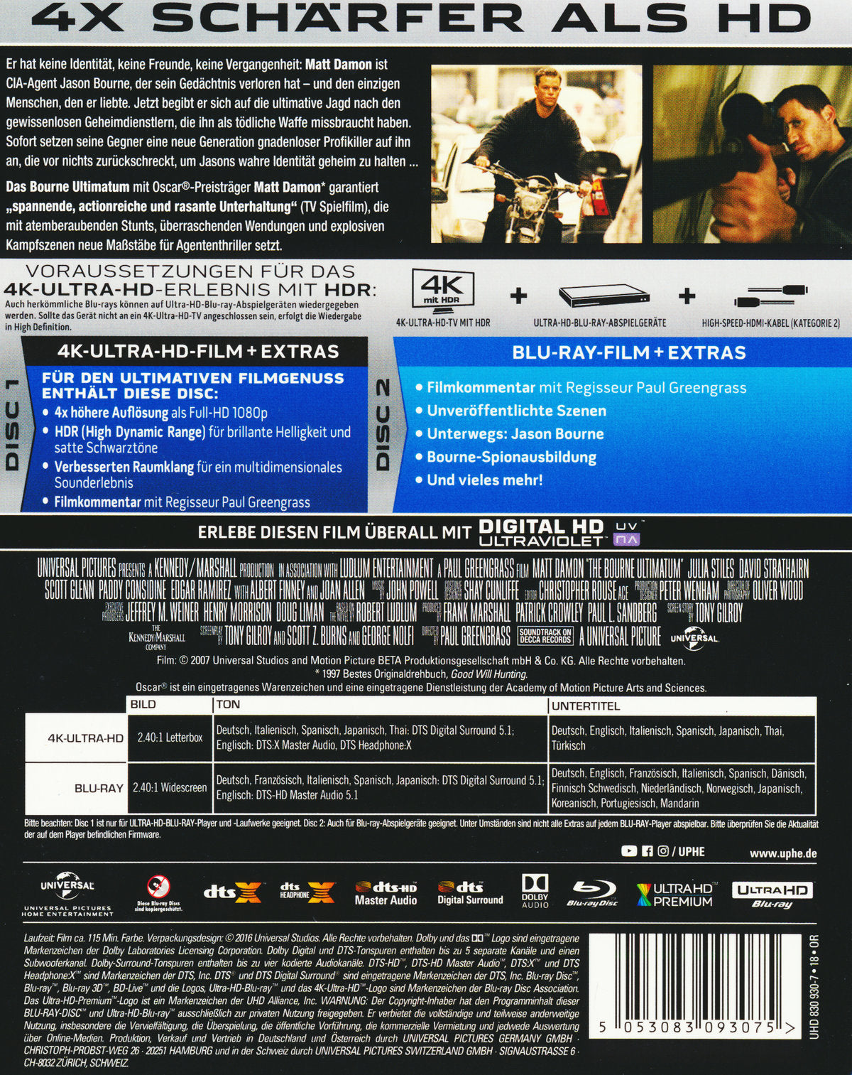 Enthält: Filmkommentar; Unveröffentlichte Szenen; Unterwegs: Jason Bourne; Bourne-Spionausbildung;