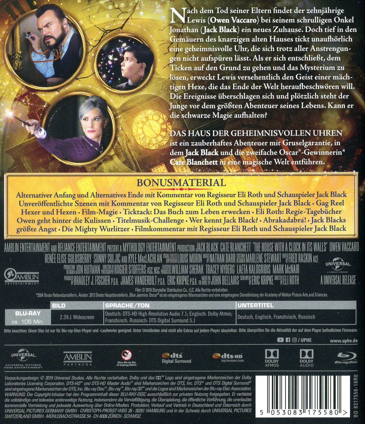 Enthält: Alternativer Anfang und Alternatives Ende mit Kommentar; Unveröffentlichte Szenen mit Kommentar; Gag Reel; Hexer und Hexen; Film Magie; Ticktack: Das Buch zum Leben erwecken; Eli Roth: Regie-Tagebücher; Owen geht hinter die Kulissen; Titelmusik-Challenge; Wer kennt Jack Black?; Abrakadabra!; Jack Blacks größte Angst; Die Mighty Wurlitzer; Filmkommentar;