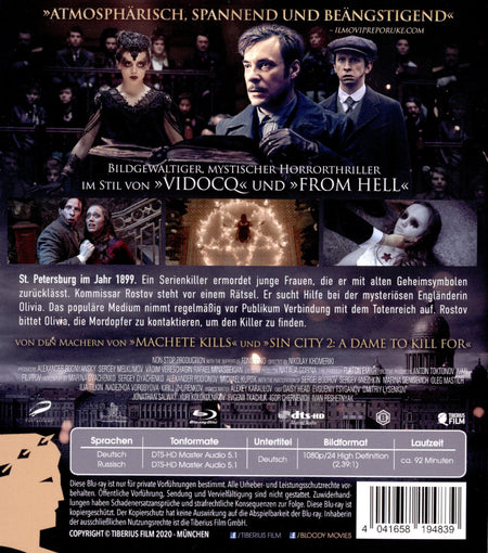 Spannendes Crime-Mystery-Kino aus Russland im Stil von „From Hell“ und Guy Ritchies „Sherlock Holmes“ von den Produzenten der oscarnominierten Filme „Leviathan“ und „Loveless“. Ein effektgeladenes Filmhighlight vom Team hinter den hochkarätigen Produktionen „Attraction“, „Coma“ und „Stalingrad“, herausragend besetzt mit Daisy Head („Fallen“, „Underworld 5“) und Evgeniy Tsyganov („Evil Boy“, „Weltengänger“) in den Hauptrollen.