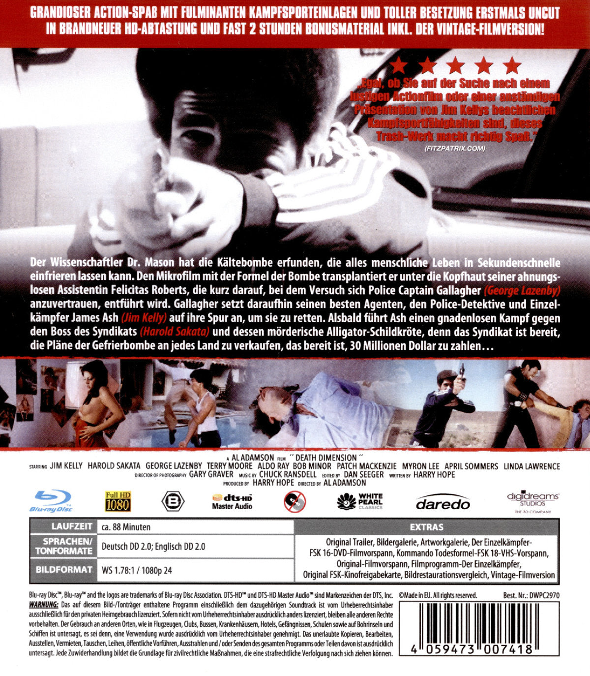 Der Kultfilm endlich auch bei uns erhältlich! Grandioser Action-Spaß mit fulminanten Kampfsporteinlagen und toller Besetzung erstmals uncut komplett in HD neu abgetastet vom Original-Kameranegativ und mit fast 2 Stunden Bonusmaterial inkl. der Vintage-Filmversion plus Wendecover!