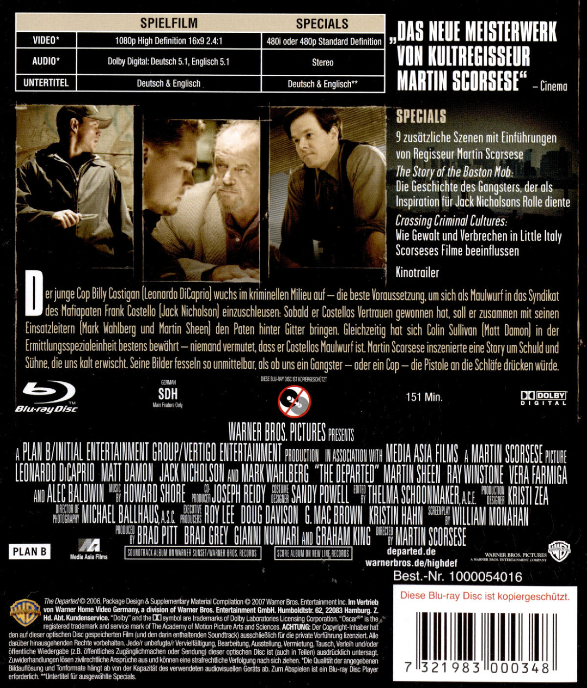 Enthält: 9 zusätzliche Szenen mit Einführung des Regisseurs; The Story of the Boston Mob: Die Geschichte des Gangsters, der als Inspiration für Jack Nicholsons Rolle diente; Crossing Criminal Cultures: Wie Gewalt und Verbrechen in Little Italy Scorseses Filme beeinflussen; Kinotrailer;