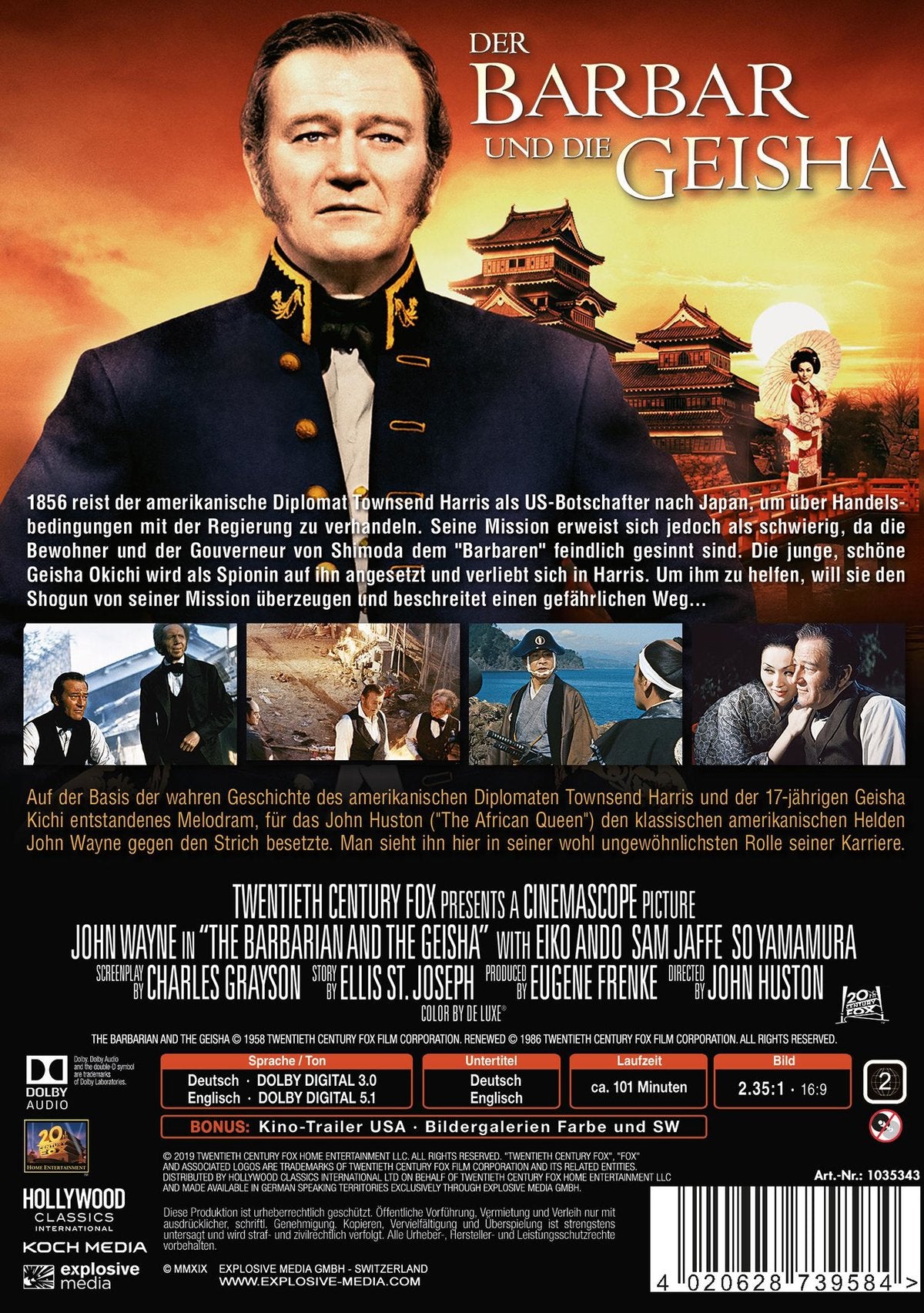 Auf der Basis der wirklichen Geschichte des amerikanischen Diplomaten Townsend Harris und der 17-jährigen Geisha Kichi entstandenes Melodram, für das John Huston ("The African Queen") den klassischen amerikanischen Helden John Wayne gegen den Strich besetzte. Man sieht ihn hier in seiner wohl ungewöhnlichsten Rolle seiner Karriere.