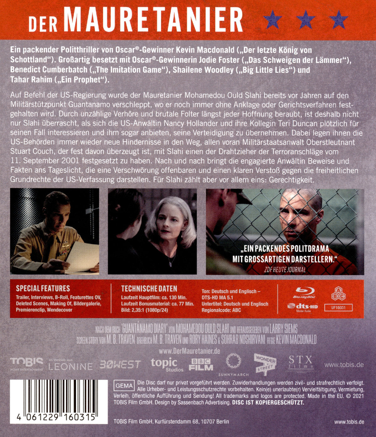Dabei stellen ihnen die US-Beh�rden immer wieder zahlreiche Hindernisse in den Weg, allen voran Milit�rstaatsanwalt Oberstleutnant Stuart Couch (Benedict Cumberbatch), der fest davon �berzeugt ist, mit Slahi einen der Drahtzieher hinter den Terroranschl�gen vom 11. September 2001 festgesetzt zu haben.