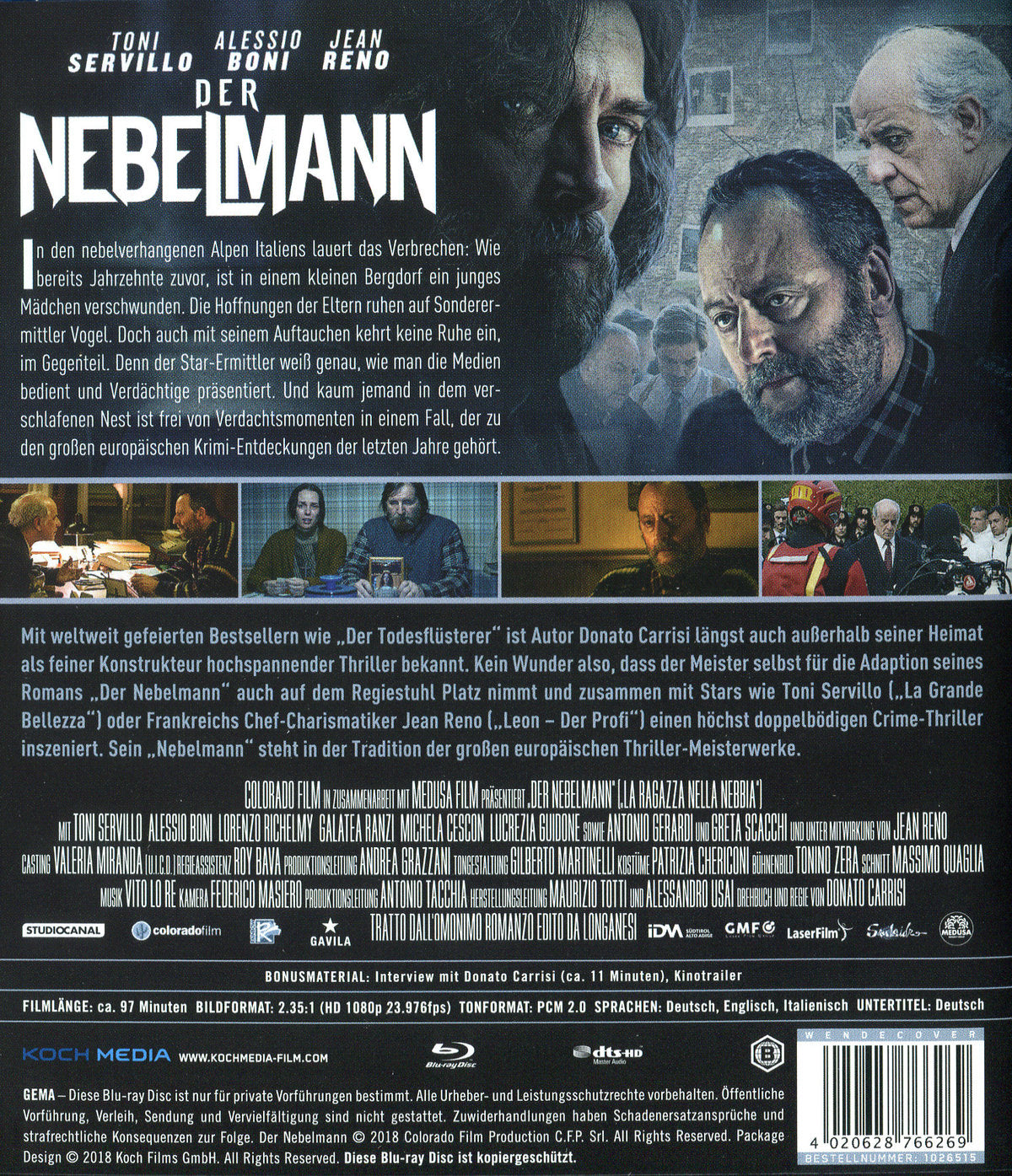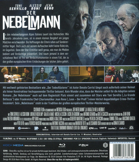 Mit weltweit gefeierten Bestsellern wie "Der Todesflüsterer" ist Autor Donato Carrisi längst auch außerhalb seiner Heimat Italien als feiner Konstrukteur hochspannender Thriller bekannt. Kein Wunder also, dass der Meister selbst für die Adaption seines Romans "Der Nebelmann" auch auf dem Regiestuhl Platz nimmt und zusammen mit Stars wie Toni Servillo ("La Grande Bellezza") oder Frankreichs Chef-Charismatiker Jean Reno ("Leon - Der Profi") einen höchst doppelbödigen Crime-Thriller inszeniert. Dieser hat ihm zu Recht den David di Donatello-Award für das beste Regiedebüt eingebracht - sein "Nebelmann" steht in der Tradition der großen europäischen Thriller-Meisterwerke.
