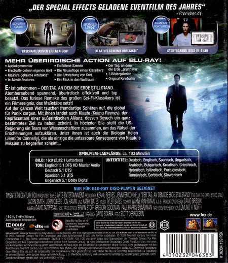 Er ist gekommen - Der Tag, an dem die Erde stillstand. Auf der ganzen Welt tauchen fremdartige Sphären auf, die global für Unruhen und Panik sorgen. Mit ihnen erscheint Klaatu, Repräsentant einer mächtigen Allianz von fremden Planeten, die die Erde und die Menschheit seit geraumer Zeit beobachten. Eilig stellt die US-Regierung ein Team von Wissenschaftlern zusammen, um das Rätsel der Erscheinungen aufklären und sich einer möglichen Bedrohung stellen zu können. Unter ihnen ist auch die Biologin Helen, die nach und nach das gesamte Ausmaß von Klaatus Auftrag als "Freund der Erde" begreift...