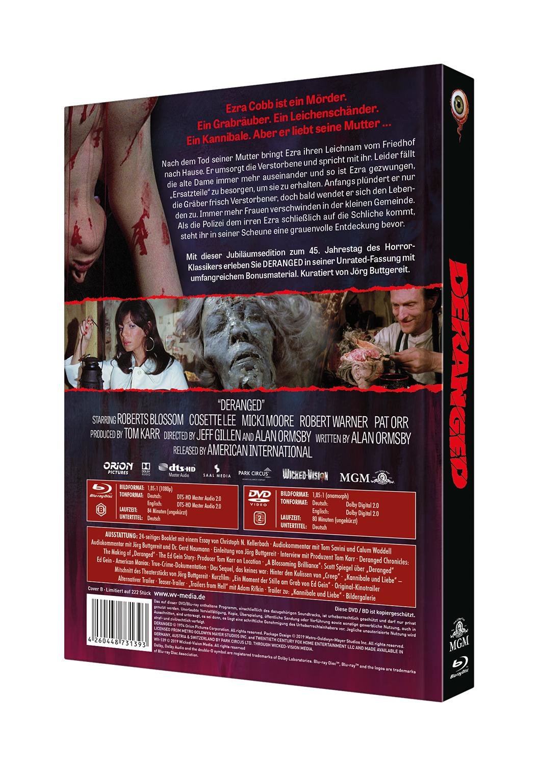 Mit dieser Jubiläumsedition zum 45. Jahrestag des Horror- Klassikers erleben Sie DERANGED in seiner Unrated-Fassung mit umfangreichem Bonusmaterial. Kuratiert von Jörg Buttgereit.