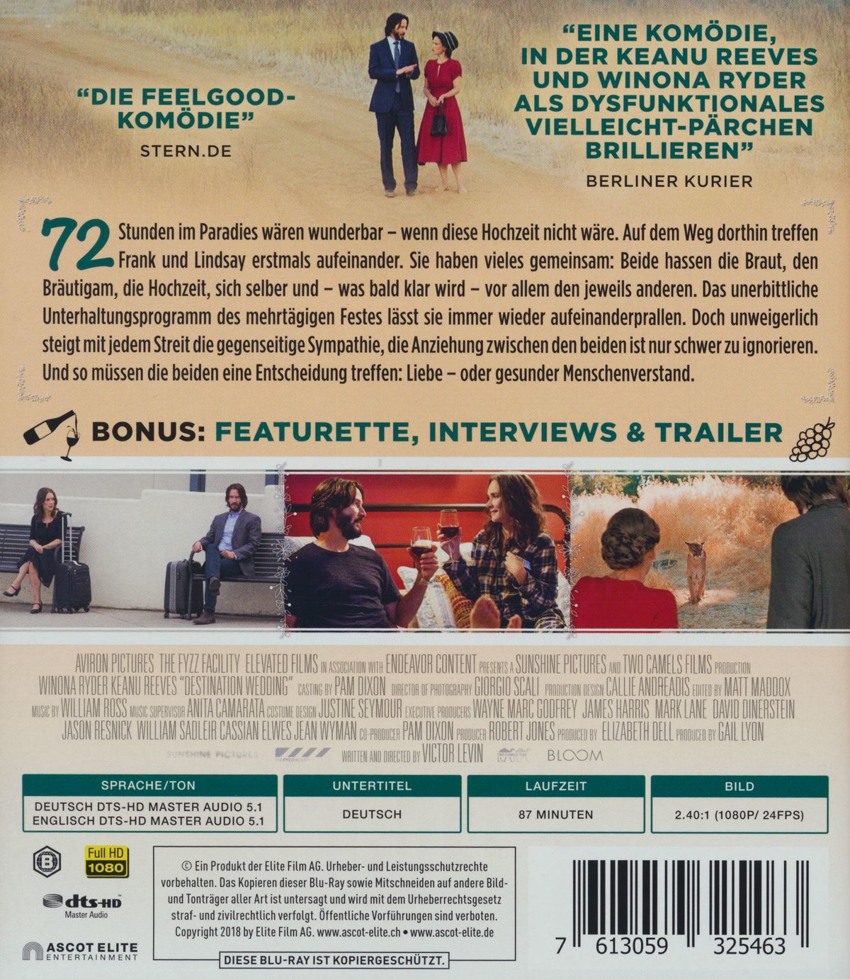 „Destination Wedding“ ist eine hinreißend komische Liebeskomödie, in der Keanu Reeves und Winona Ryder als dysfunktionales Vielleicht-Pärchen brillieren." (Filmstarts.de)