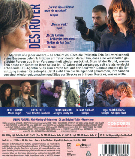Ein Mordfall wie jeder andere - so scheint es. Erin Bell (NICOLE KIDMAN), Polizistin in Los Angeles wird schnell eines Besseren belehrt: Indizien am Tatort deuten darauf hin, dass eine verschollen geglaubte Person aus ihrer Vergangenheit wieder zurück ist. Silas (TOBY KEBELL) ist der Grund, warum Erin heute ein Schatten ihrer selbst ist, eine gebrochene, innerlich wie äußerlich zerstörte Frau, die durch ihr Leben stolpert wie eine Untote. 17 Jahre sind vergangen, seit Erin als verdeckt arbeitende FBI-Agentin Silas zum ersten Mal auf der Spur war. Damals endete die Ermittlung in einer Katastrophe. Jetzt sieht Erin die Gelegenheit gekommen, ihre Sünden von einst wieder gut zu machen und Silas zur Strecke zu bringen. Koste es, was es wolle...