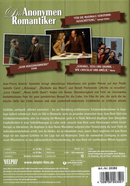 Zartbitter, samtigsüß, raffiniert aromatisch - in der Herstellung verführerischer Schokoladenkreationen ist Angélique äußerst erfinderisch. Doch sie fällt in Ohnmacht, wenn sie jemanden ansprechen muss. Jean-René führt eine Schokoladenmanufaktur, aber im Umgang mit Menschen gerät er in Panik. Während Angélique ihrer übergroßen Empfindsamkeit in einer Selbsthilfegruppe zu Leibe rückt, versucht Jean-René seine Hemmungen mittels Einzeltherapie zu überwinden. Als Angélique in Jean-Renés Manufaktur aufgrund einer Verwechslung die neue Stelle als Vertriebskraft antritt, sind die Hürden, die sie überwinden muss, enorm. Doch verglichen mit Jean-Renés Angst vor den eigenen Gefühlen, ist ihre Lage fast ein Kinderspiel. Denn die unerwartete Zuneigung zu seiner neuen Mitarbeiterin ist eine außerordentliche Herausforderung, der Jean-René mit unorthodoxen Mitteln begegnet.