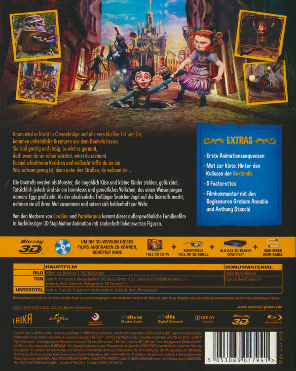 Enthält: Erste Animationssequenzen; Mut zur Kiste: Hinter den Kulissen der Boxtrolls; 5 Featurettes; Filmkommentare;