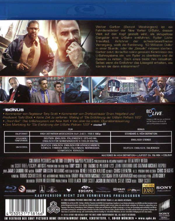 Enthält: Kommentar von Regisseur Tony Scott; Kommentar von Drehbuchautor Brian Helgeland und Produzent Todd Black; Keine Zeit zu verlieren: Making of; "Third Rail": Das U-Bahn System von New York; Von oben nach unten: Charakterstilisierung; Das Marketing für die "Entführung der U-Bahn Pelham 123";