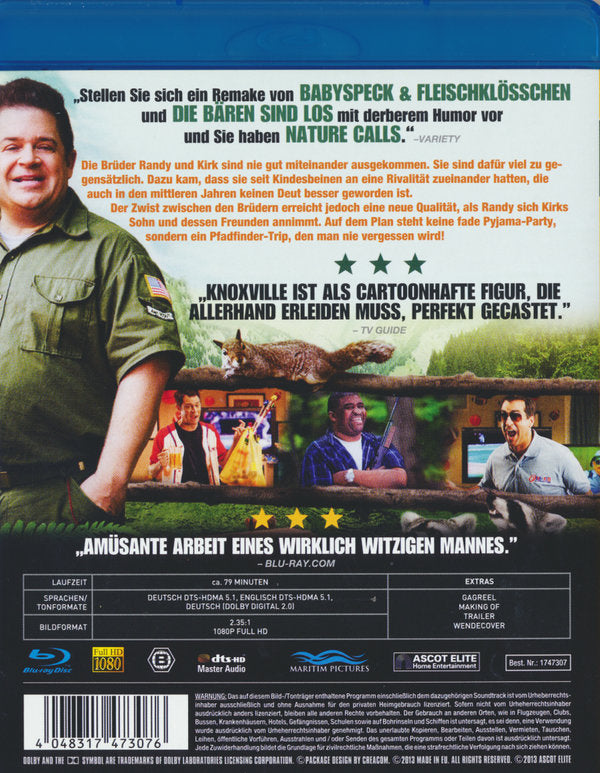 "Stellen Sie sich ein Remake von 'Babyspeck und Fleischklösschen' und die 'Bären sind los' mit derberem Humor vor und Sie haben 'Nature Calls'." (Variety)