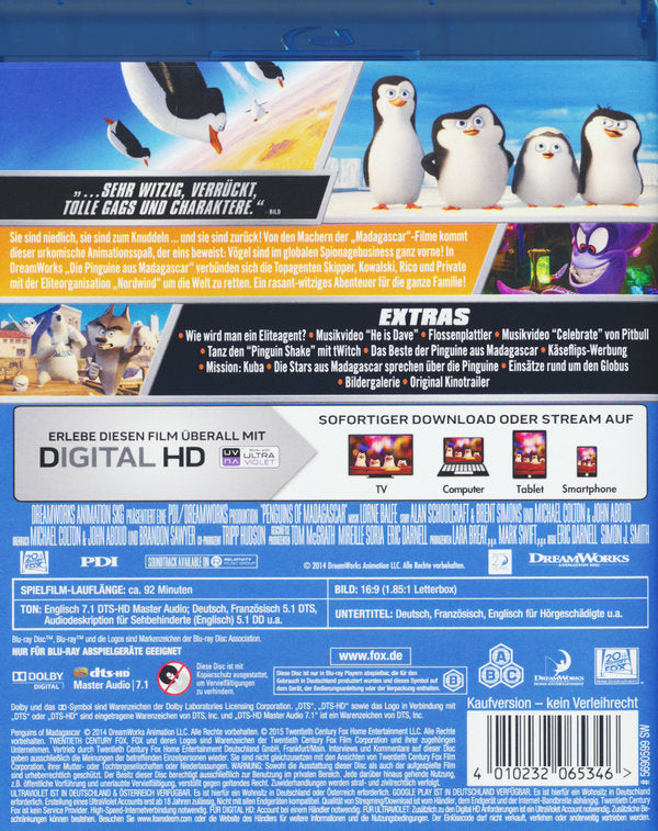 Enthält: Wie wird man ein Eliteagent?; Musikvideo "He is Dave"; Flossenplattler; Musikvideo "Celebrate" von Pitbull; Tanz den "Penguin Shake" mit Witch; Das Beste der Pinguine aus Madagascar; Käseflips-Werbung; Mission: Kuba; Die Stars aus aus Madagascar sprechen über die Pinguine; Einsätze rund um den Globus; Bildergalerie; Original Kinotrailer;
