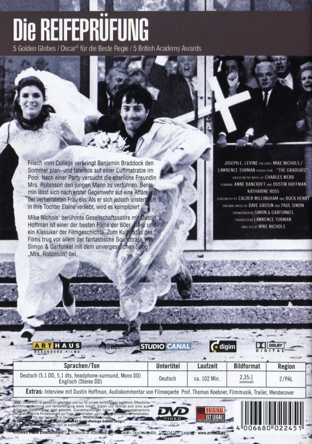 Schauspieler: Anne Bancroft, Dustin Hoffman, Katharine Ross, Murray Hamilton, Richard Dreyfuss und William Daniels