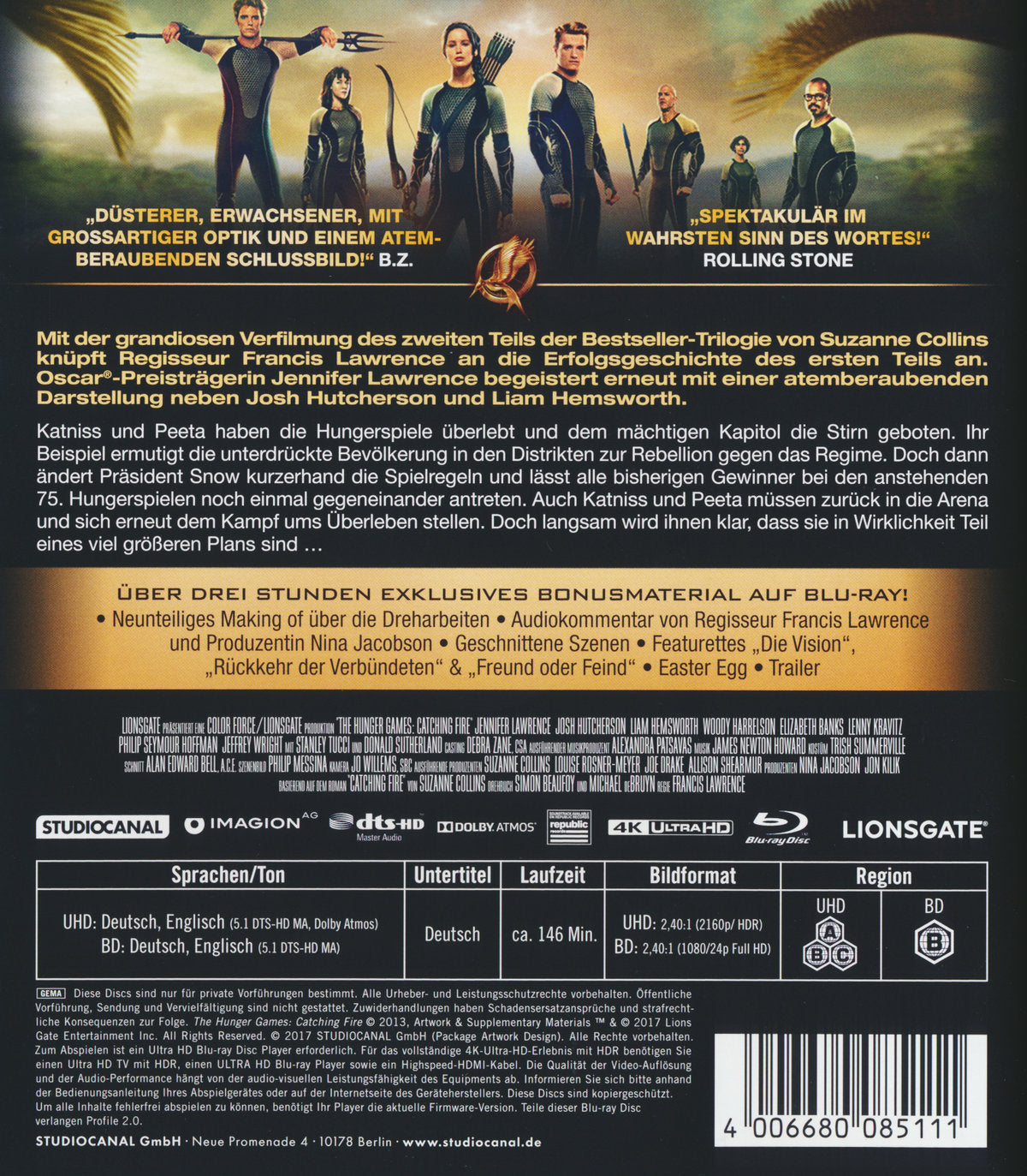Enthält: Neunteiliges Making of; Audiokommentar von Regisseur Francis Lawrence und Produzentin Nina Jacobson; Geschnittene Szenen; Featurettes; Trailer; Easter Egg;